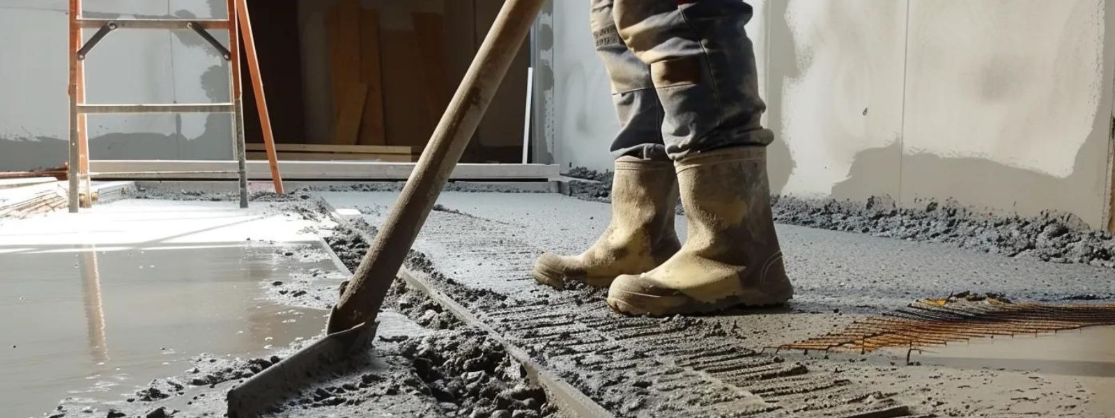 Once poured, you need to level it fast. Use a screed board (long straight board), drag it across the surface, fill low spots as you go, and remove excess from high spots.